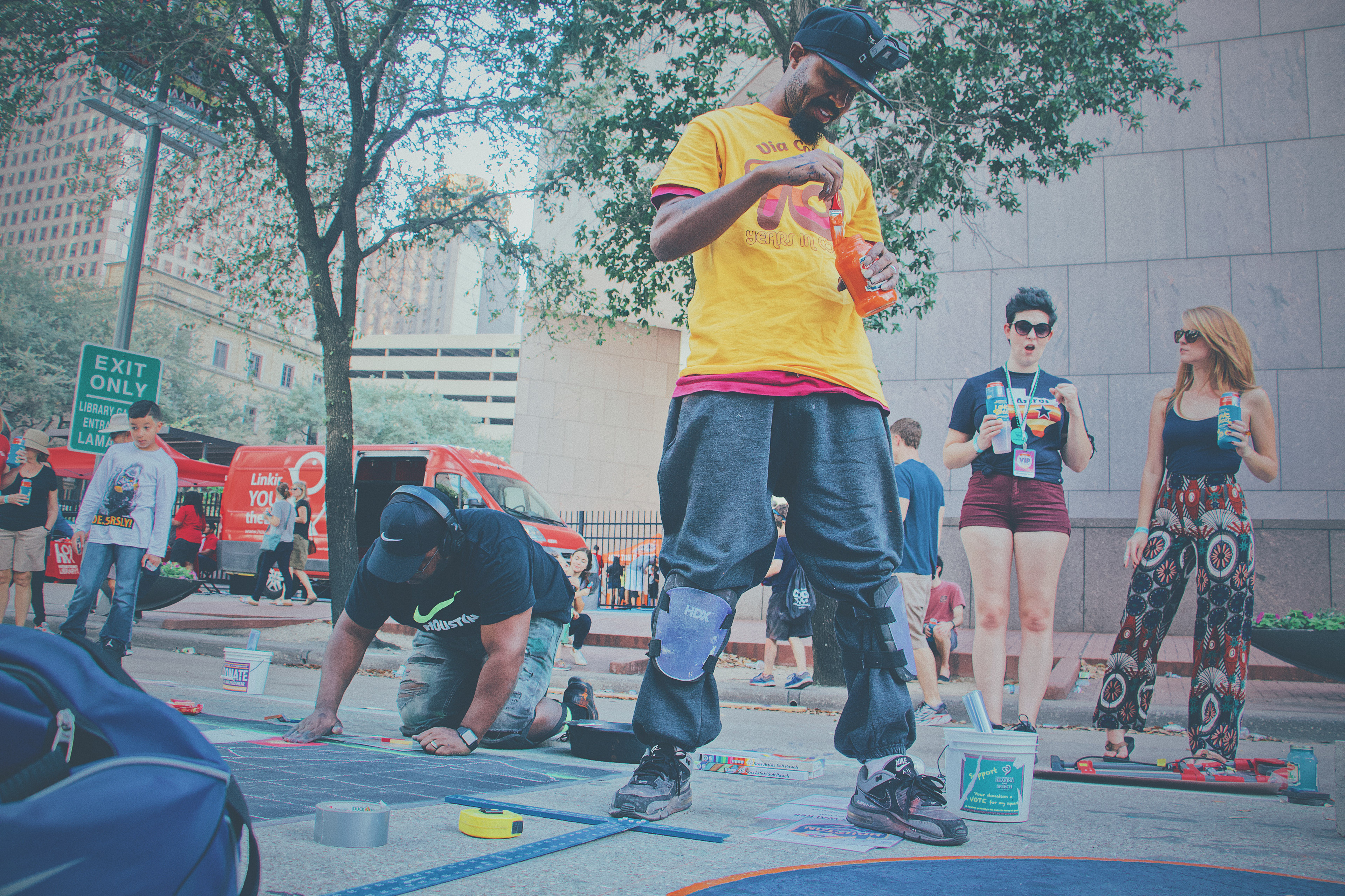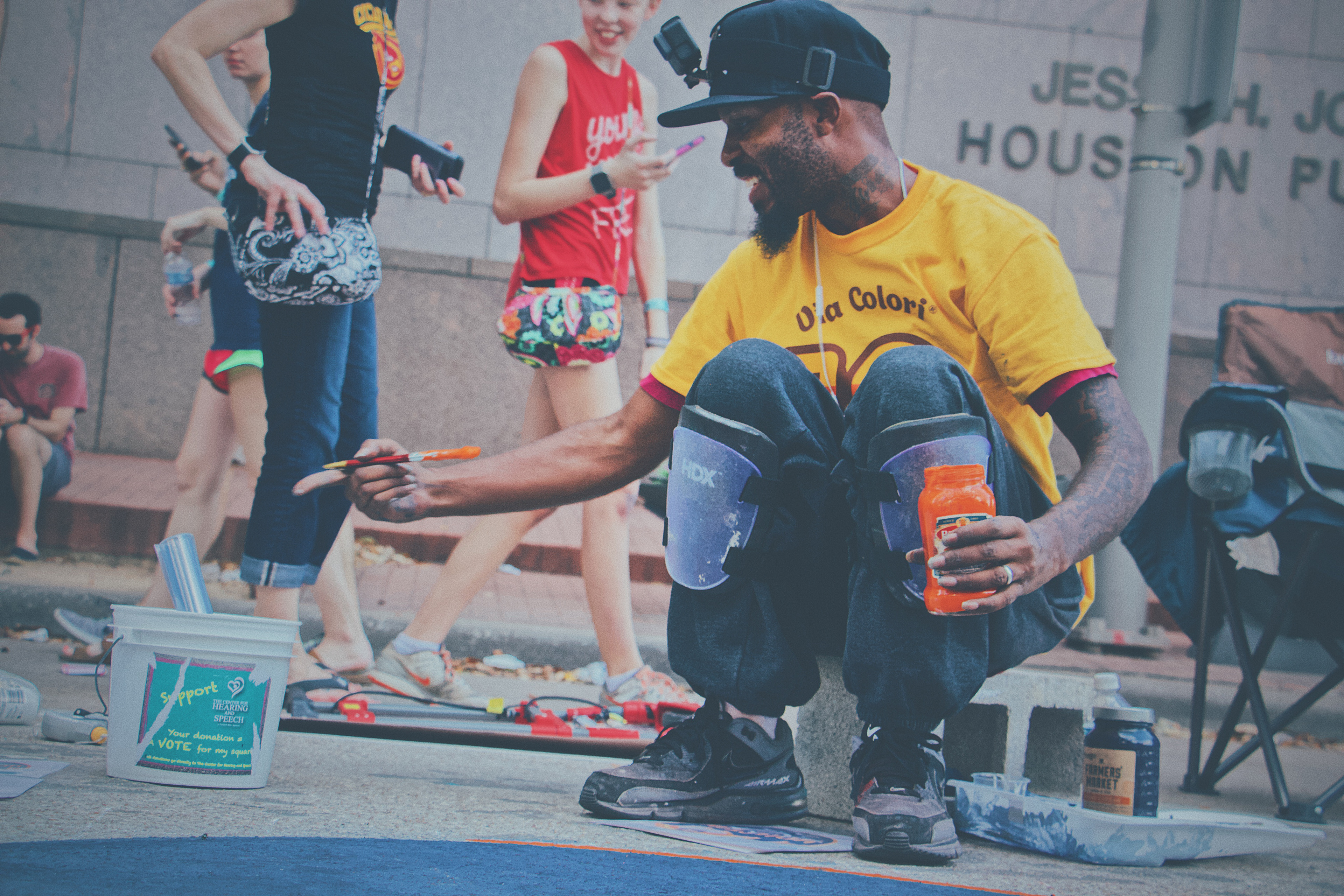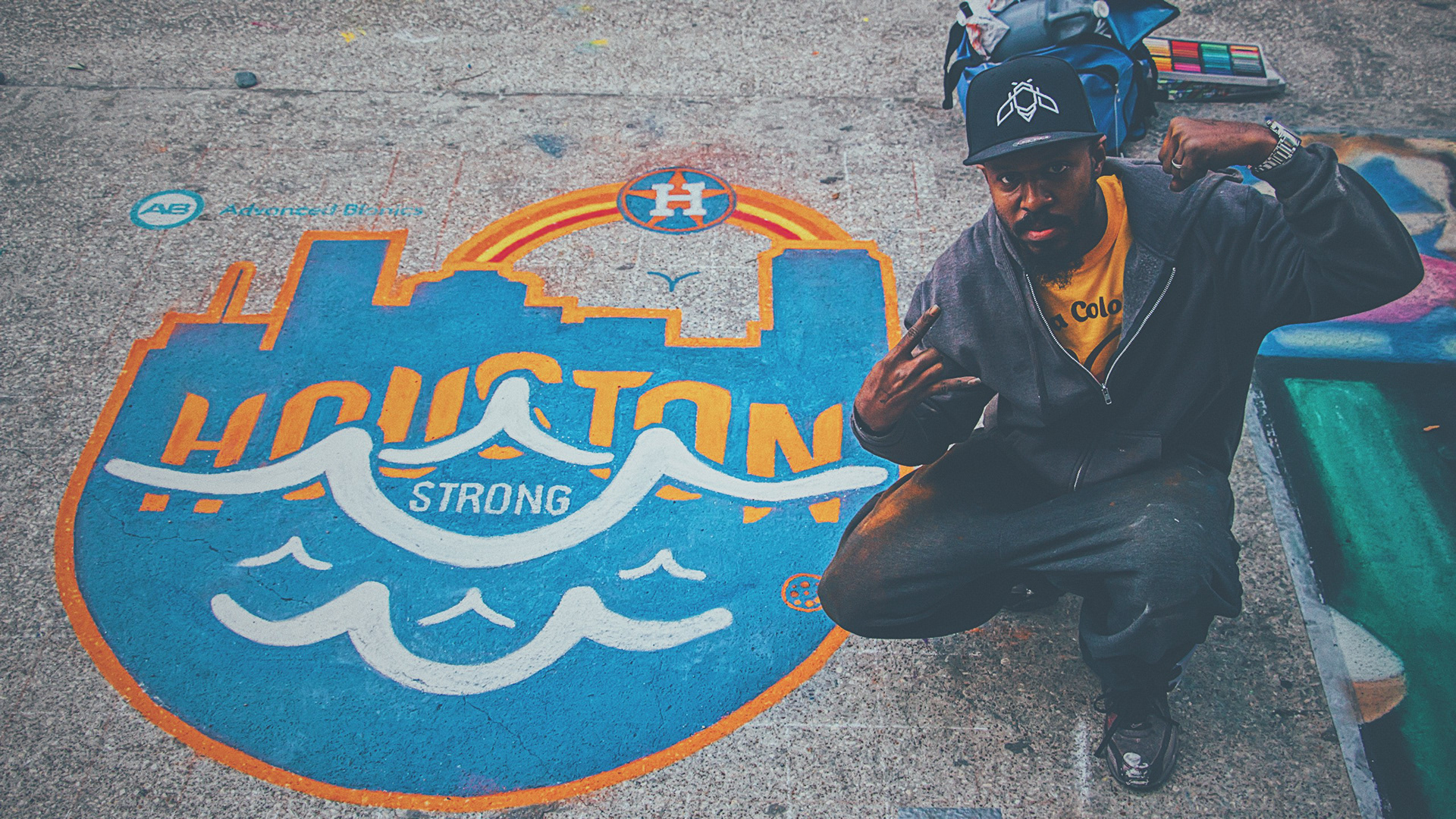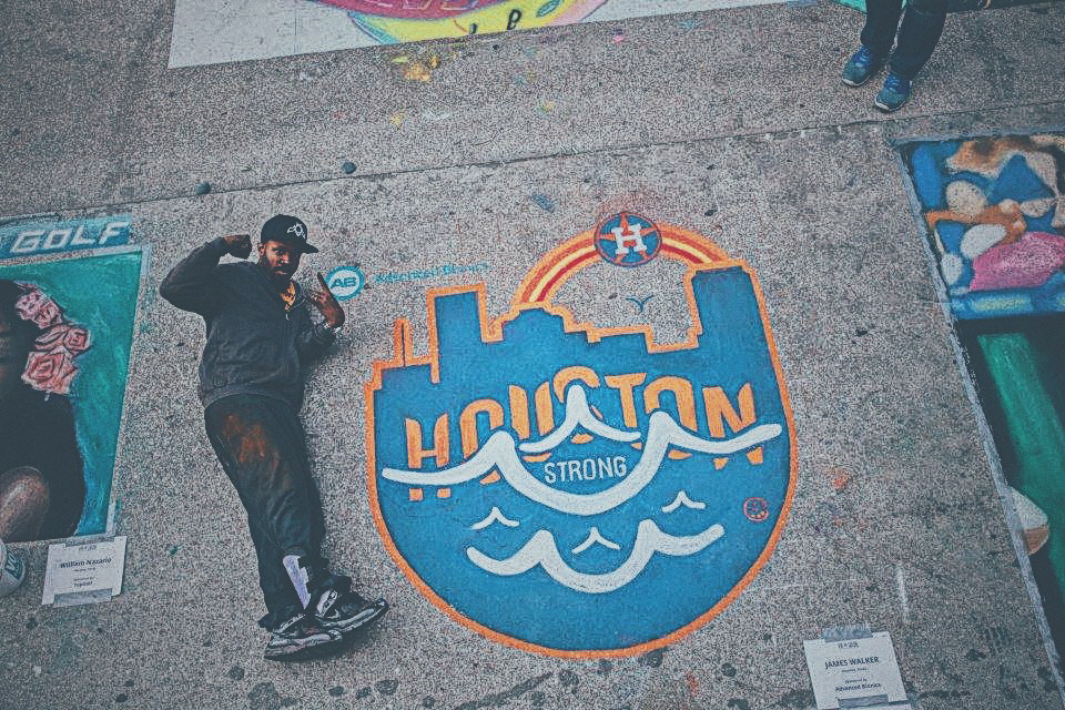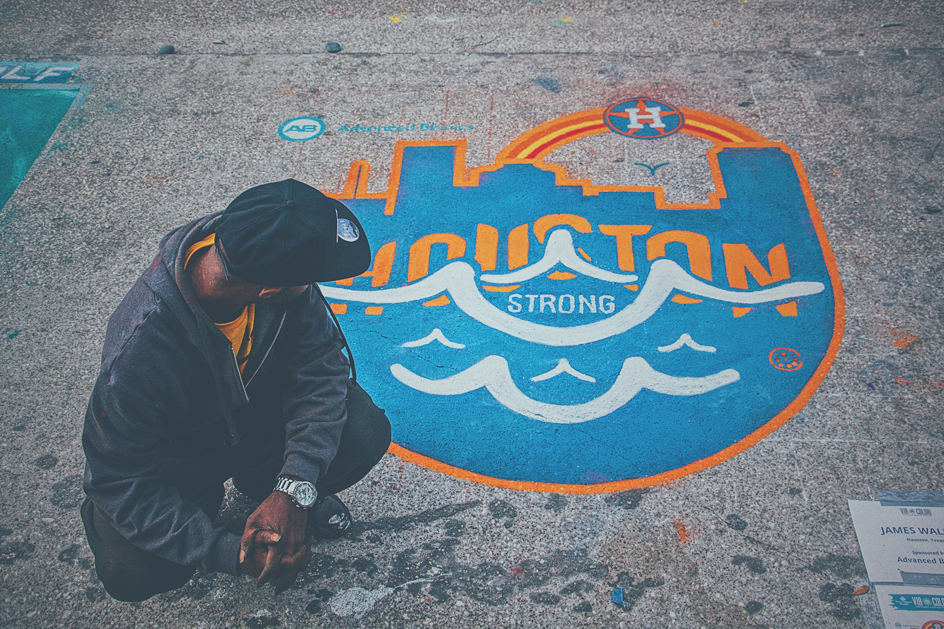 A special tribute to the Houston Astros and a visual relief for all those affected by Hurricane Harvey. This installation was organized by the Houston Via Colori Street Painting Festival as a benefit for the Center for Hearing & Speech and sponsored by Advanced Bionics.