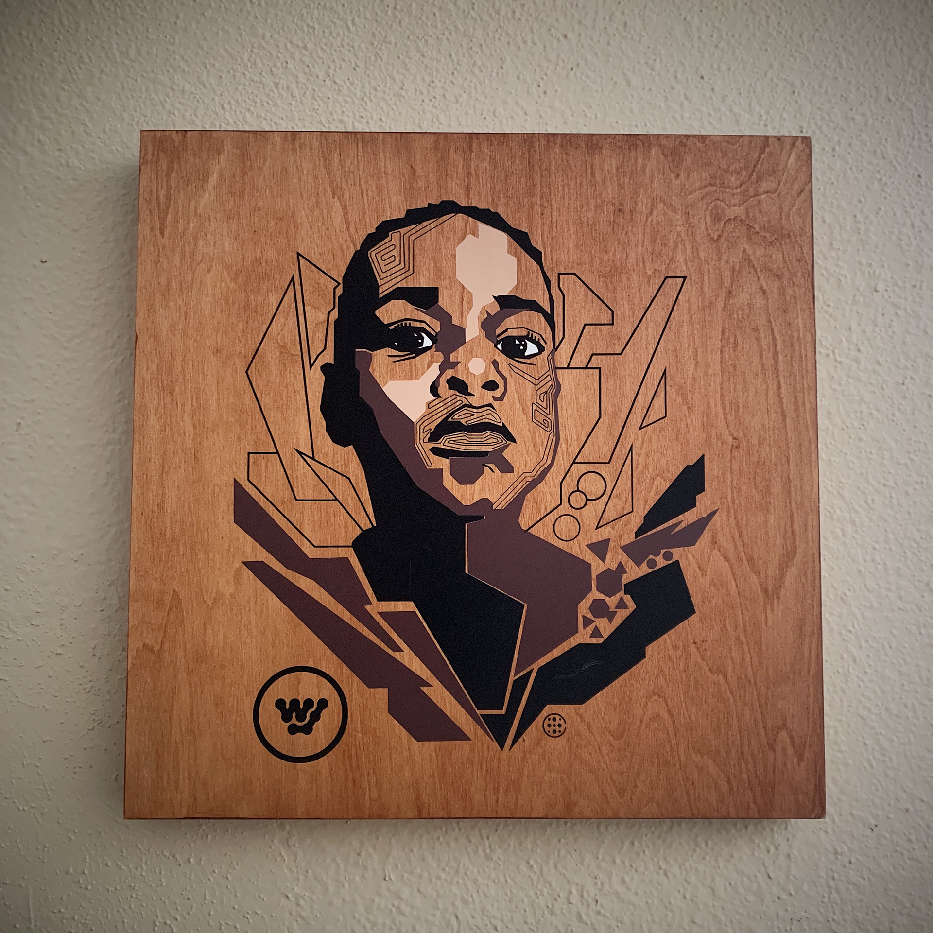 Gen-e-sis // 20 in x 20 in // 4-Color Silkscreen Print on Woodstained Panel // Not much of a painter, I'm more of a multimedia artist. This piece was selected for the Museum of Fine Arts Houston, Citywide African American Artists Exhibition in 2017. It's a portrait of my son at the age of 3, yet ironically, it continues to grow with him. I named it "Gen-e-sis" which represents the beginning of fatherhood and our journey together.