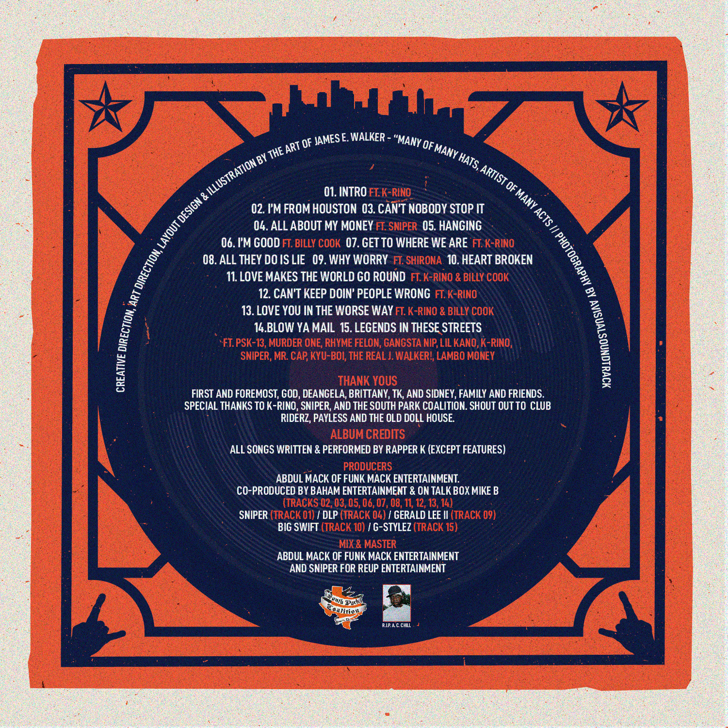 Cover Art & Design for hip hop/rap recording artist and South Park Coalition member Rapper K | Commissioned for Creative & Art Direction, Design & Illustration.